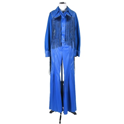 70s Vintage Western Dress Stage Ensemble in Blue with Fringe and Rhinestones